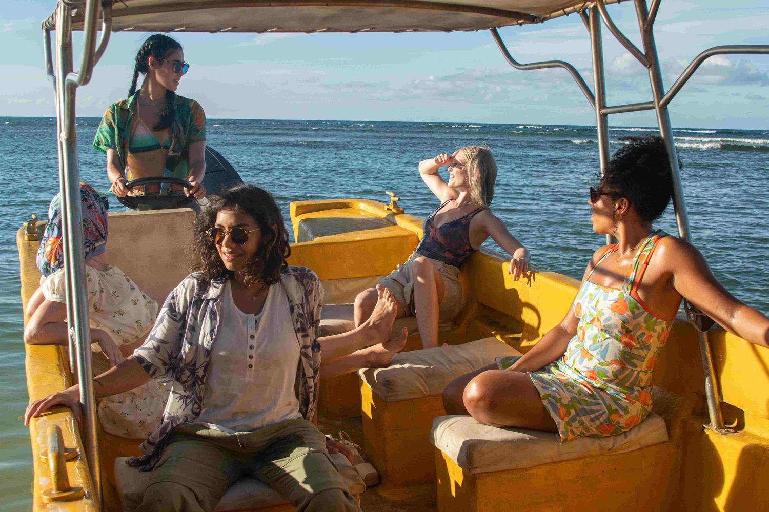 Die Freundinnen Meg, Cam, Kayla und Ruth sind auf die Hochzeit ihrer besten Freundin Lizzie in die Karibik eingeladen. Als spontan die Idee aufkommt, am Vortag der Hochzeit mit dem Boot zu einem Mädels-Trip auf eine einsame Insel aufzubrechen, wissen sie nicht, was sie erwartet. Kurz nach der Ankunft im Paradies wird Ruth beim Schwimmen von einem Hai angegriffen – panisch versuchen die Freundinnen, sie zurück ans Festland zu bringen. Nur, um kurze Zeit später festzustellen, dass das gemietete Boot ein Leck hat – mitten auf dem Ozean, ohne Land in Sicht. Blut sickert ins Wasser und die Bahnen der sie umkreisenden Haie werden immer enger: Ein rasanter und blutiger Wettlauf gegen die Zeit beginnt… SOMETHING IN THE WATER ist ein Hai-Survival-Thriller vom Feinsten! In Hayley Easton Streets Debütfilm spielen Hiftu Quasem („Ten Percent“), Lauren Lyle („Outlander“), Nicole Rieko Setsuko („Eavesdropping“), Ellouise Shakespeare-Hart („One Four Three“) sowie Natalie Mitson („The Larkins“) fünf Freundinnen, die vor der idyllischen Kulisse der Dominikanischen Republik ums nackte Überleben kämpfen.