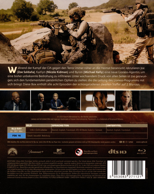 Während der Kampf der CIA gegen den Terror immer näher an die Heimat rückt, rekrutieren Joe (Zoe Saldaña), Kaitlyn (Nicole Kidman) und Byron (Michael Kelly) eine neue Lioness-Agentin, um eine bisher unbekannte Bedrohung zu infiltrieren. Unter wachsendem Druck von allen Seiten, ist Joe gezwungen, sich den fundamentalen persönlichen Opfern zu stellen, die die Leitung des Lioness-Programms mit sich bringen. Diese Box enthält alle acht Episoden der actiongeladenen zweiten Staffel.