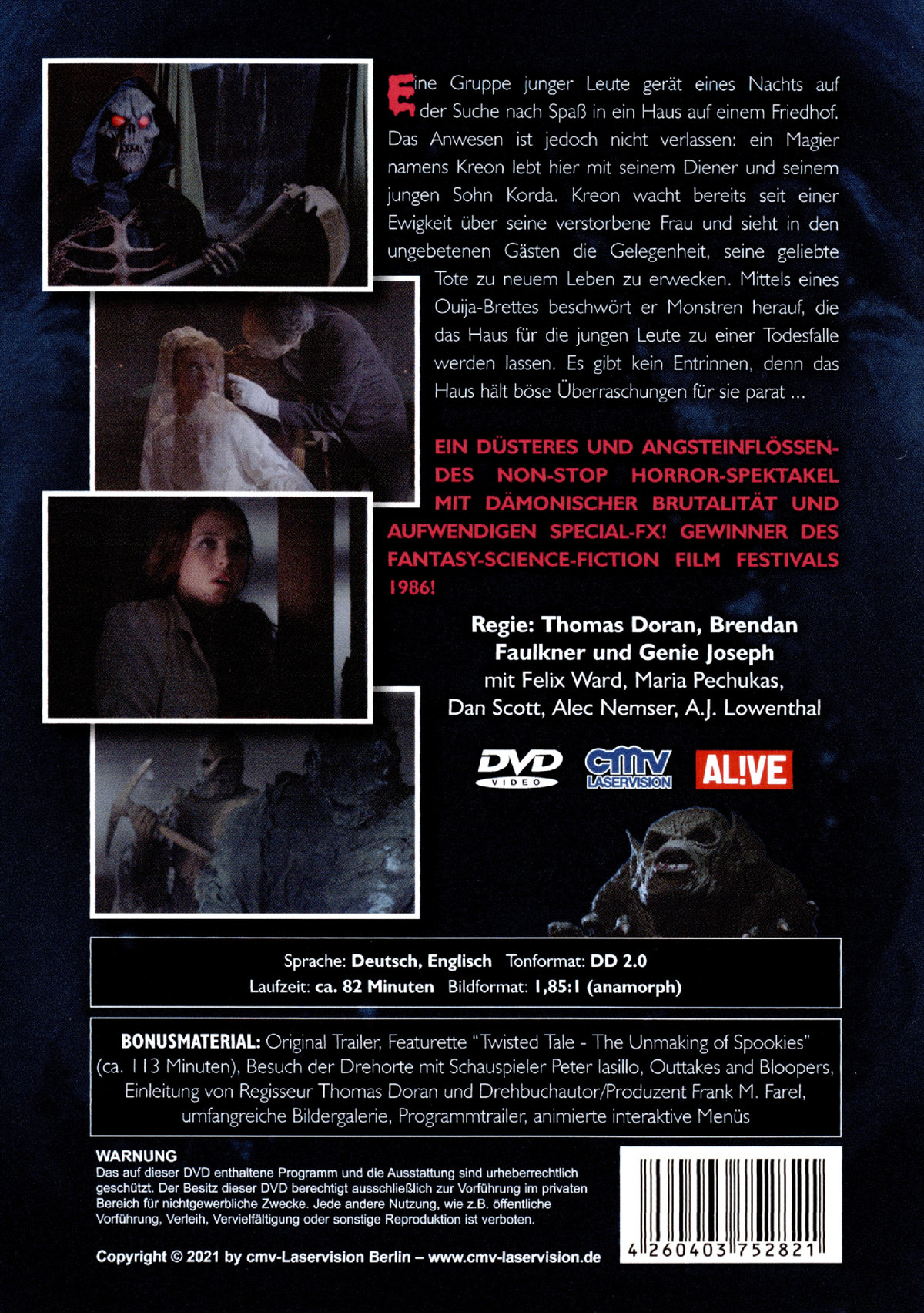 Eine Gruppe junger Leute gerät eines Nachts auf der Suche nach Spaß in ein Anwesen auf einem Friedhof. Das Haus ist jedoch nicht verlassen: ein Magier namens Kreon lebt hier mit seinem Diener und seinem jungen Sohn Korda. Kreon wacht bereits seit einer Ewigkeit über seine verstorbene Frau und sieht in den ungebetenen Gästen die Gelegenheit, seine geliebte Tote zu neuem Leben zu erwecken. Mittels eines Ouija-Brettes beschwört er Monstren herauf, die das Haus für die jungen Leute zu einer Todesfalle werden lassen. Es gibt kein Entrinnen, denn das Haus hält böse Überraschungen für sie parat ...