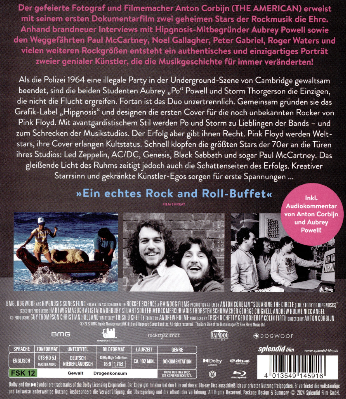 Als die britische Polizei 1964 eine illegale Party in der Underground-Szene von Cambridge gewaltsam beendet, sind die beiden Kunststudenten Aubrey „Po“ Powell und Storm Thorgerson die Einzigen, die nicht die Flucht ergreifen und den Beamten die Stirn bieten. Fortan ist das Duo unzertrennlich. Gemeinsam gründen sie das Grafik-Label „Hipgnosis“ und designen die ersten Cover für die noch unbekannten Rocker von Pink Floyd. Mit avantgardistischem Stil und dem kompromisslosen Primat der Kunst vor dem Kommerz werden Po und Storm zu Lieblingen der Bands – und zum Schrecken der Musikstudios und -produzenten. Der Erfolg aber gibt ihnen Recht. Pink Floyd werden Weltstars, ihre Cover erlangen Kultstatus. Mit dem minimalistischen Prisma auf dem Album „The Dark Side of the Moon“ (1973) kreieren die beiden das wohl berühmteste Artwork der Rockgeschichte. Schnell klopfen die größten Stars der 70er an die Türen ihres heruntergekommenen Studios im Londoner Westend: Led Zeppelin, AC/DC, Genesis, Black Sabbath und sogar Paul McCartney. Das gleißende Licht des Ruhms zeitigt jedoch auch die Schattenseiten des Erfolgs. Kreativer Starrsinn, Drogenexzesse und gekränkte Künstler-Egos sorgen für erste Spannungen ...