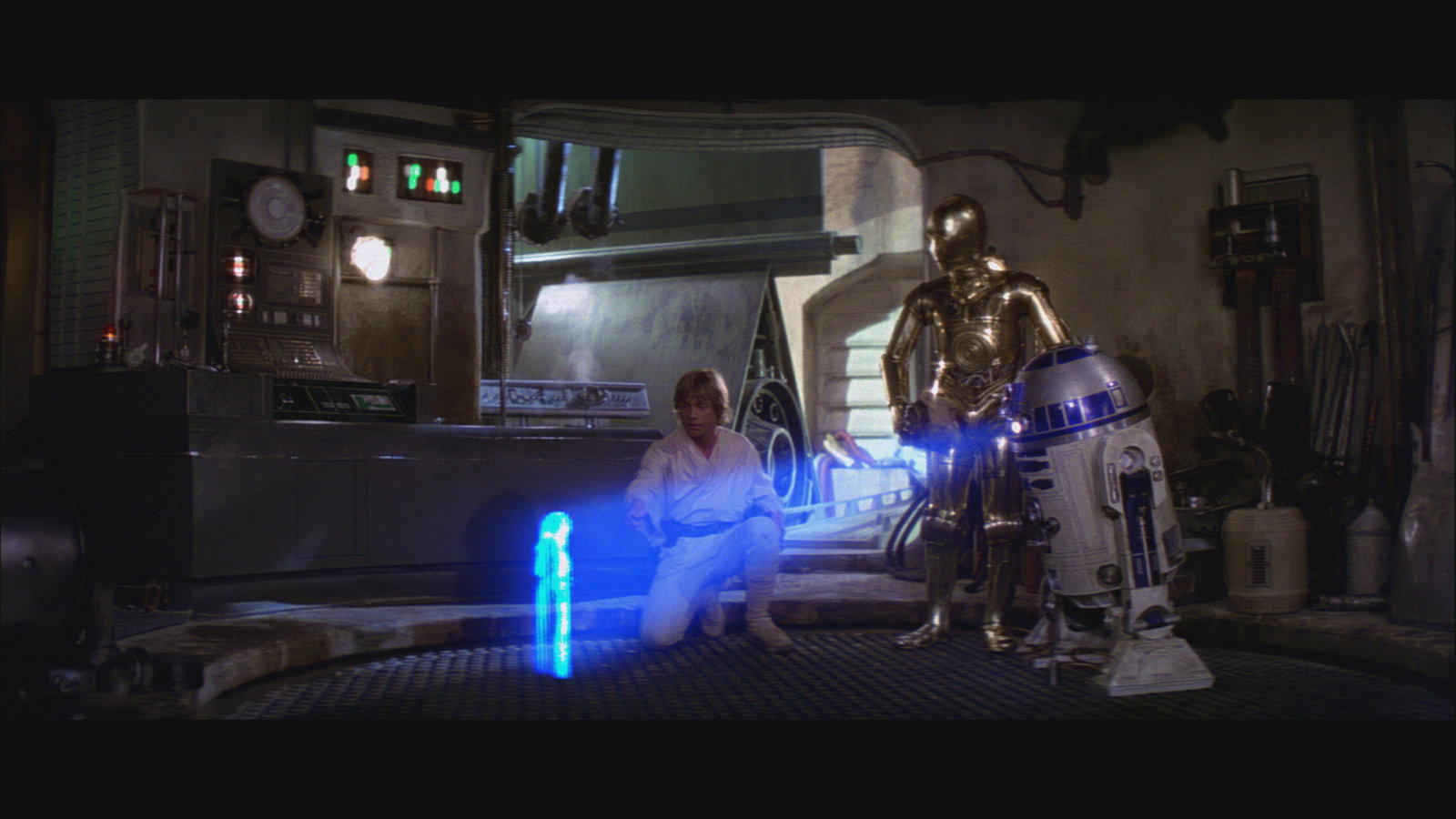Seit der Vernichtung der Jedi-Ritter steht die Galaxis unter der grausamen Herrschaft des Imperiums. Der einfache Farmerjunge Luke Skywalker (Mark Hamill) trifft auf Obi-Wan Kenobi (Alec Guinness), der seit Jahren in Abgeschiedenheit auf dem Wüstenplaneten Tatooine lebt. Obi-Wan beginnt Luke zum Jedi-Ritter auszubilden. Luke erfährt vom Kampf der Rebellen gegen das Imperium und lernt die geheimnisvolle Kraft der Macht kennen. Gemeinsam mit dem Schmuggler Han Solo (Harrison Ford) und seinem Gefährten Chewbacca versucht Luke Prinzessin Leia (Carrie Fisher) zu retten, die auf dem von Darth Vader und Gouverneur Tarkin (Peter Cushing) ontrollierten Todesstern gefangen gehalten wird.