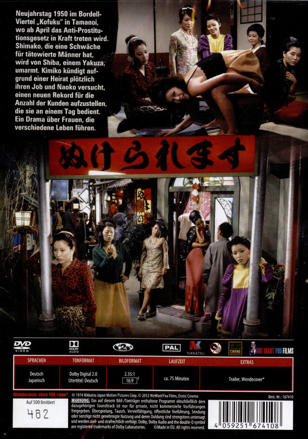 Neujahrstag 1950. "Kofuku" in Tamanoi, wo ab April das Anti-Prostitutionsgesetz in Kraft treten wird. Shimako, die eine Schwäche für tätowierte Männer hat, wird von Shiba, einem Yakuza, umarmt. Kimiko kündigt aufgrund einer Heirat plötzlich ihren Job und Naoko versucht, einen neuen Rekord für die Anzahl der Kunden aufzustellen, die sie an einem Tag bedient. Ein Drama über Frauen, die verschiedene Leben führen.