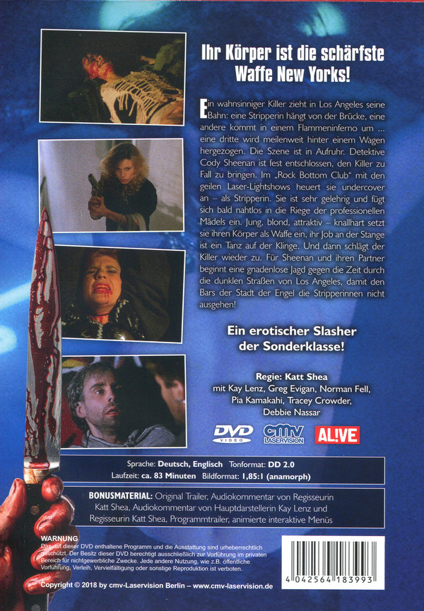 Ein wahnsinniger Killer zieht in Los Angeles seine Bahn: eine Stripperin hängt von der Brücke, eine andere kommt in einem Flammeninferno um ... eine dritte wird meilenweit hinter einem Wagen hergezogen. Die Szene ist in Aufruhr. Detektive Cody Sheenan ist fest entschlossen, den Killer zu Fall zu bringen. Im "Rock Bottom Club" mit den geilen Laser-Lightshows heuert sie undercover an - als Stripperin. Sie ist sehr gelehrig und fügt sich bald nahtlos in die Riege der professionellen Mädels ein. Jung, blond, attraktiv - knallhart setzt sie ihren Körper als Waffe ein, ihr Job an der Stange ist ein Tanz auf der Klinge. Und dann schlägt der Killer wieder zu. Für Sheenan und ihren Partner beginnt eine gnadenlose Jagd gegen die Zeit durch die dunklen Straßen von Los Angeles, damit den Bars der Stadt der Engel die Stripperinnen nicht ausgehen!