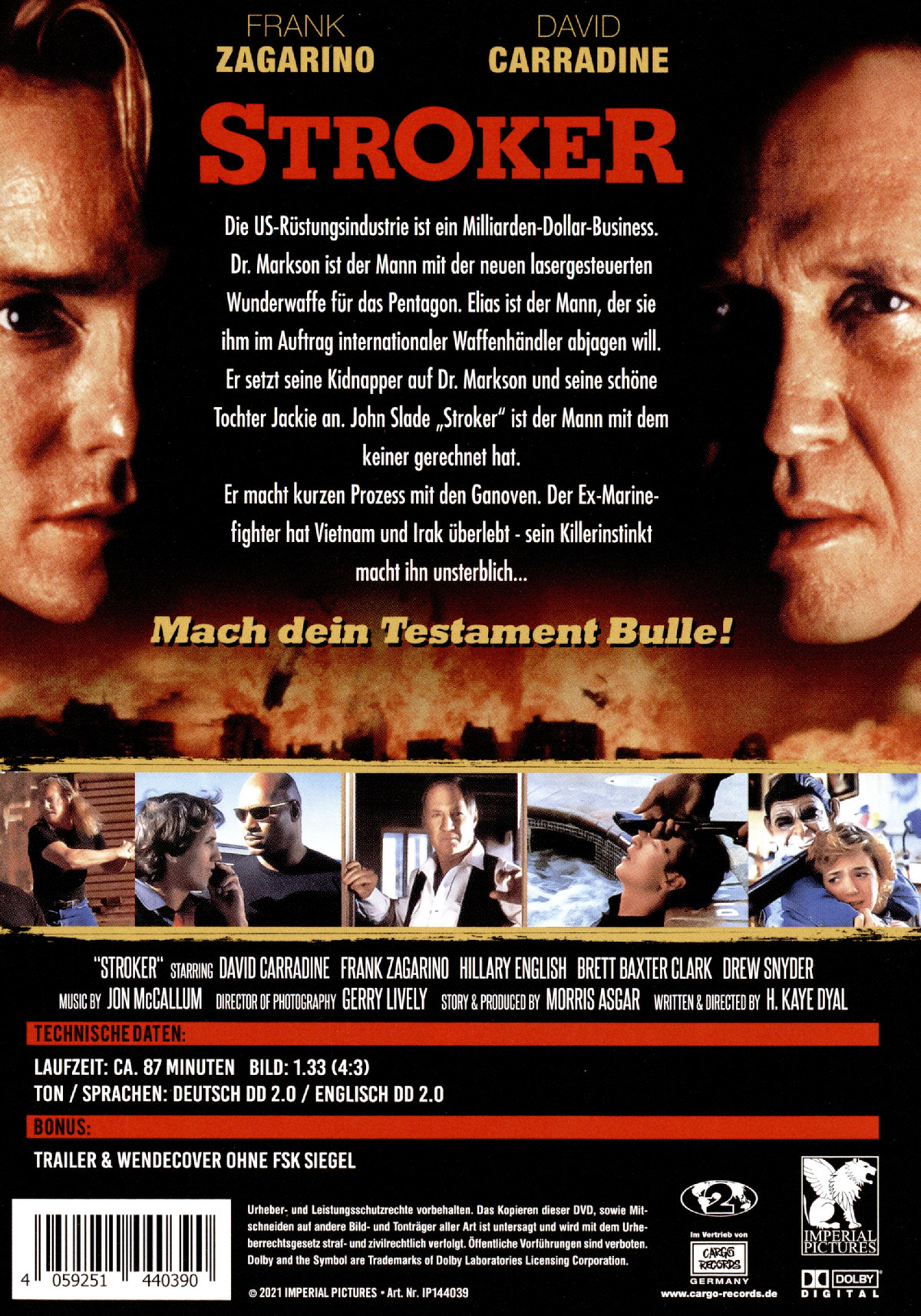 Die US-Rüstungsindustrie ist ein Milliarden-Dollar Buisness. Dr. Markson ist der Mann mit der neuen lasergesteuerten Wunderwaffe für das Pentagon. Elias ist der Mann, der sie ihm im Auftrag internationaler Waffenhändler abjagen will. Er setzt seine Kidnapper auf Dr. Markson und seine schöne Tochter Jackie an. John Slade "Stroker" ist der Mann mit dem keiner gerechnet hat. Er macht kurzen Prozeß mit den Ganoven. Der Ex-Marinefighter hat Vietnam und Irak überlebt - sein Killerinstinkt macht ihn unsterblich ...