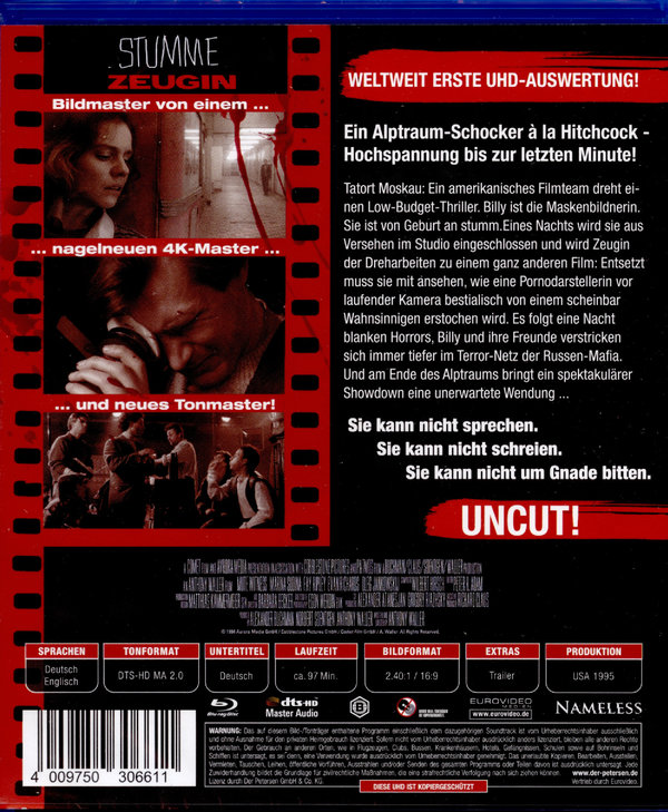 Tatort Moskau: Ein amerikanisches Filmteam dreht einen Low-Budget-Thriller. Billy ist die Maskenbildnerin. Sie ist von Geburt an stumm. Eines Nachts wird sie aus Versehen im Studio eingeschlossen und wird Zeugin der Dreharbeiten zu einem ganz anderen Film: Entsetzt muss sie mit ansehen, wie eine Pornodarstellerin vor laufender Kamera bestialisch von einem scheinbar Wahnsinnigen erstochen wird. Es folgt eine Nacht blanken Horrors, Billy und ihre Freunde verstricken sich immer tiefer im Terror-Netz der Russen-Mafia. Und am Ende des Alptraums bringt ein spektakulärer Show-down eine unerwartete Wendung ...