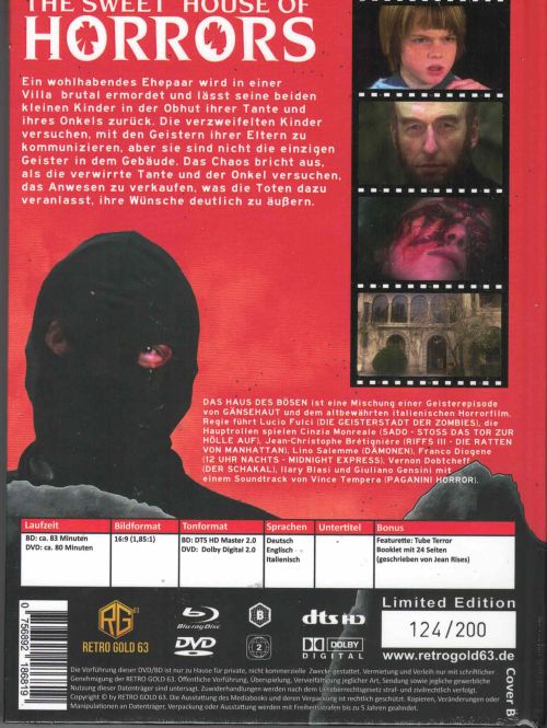 RETRO GOLD 63 präsentiert zum ersten Mal auf deutsch die ungeschnittene Fassung in HD auf Blu Ray in verschiedenen edlen Mediabooks. In DAS HAUS DES BÖSEN wird ein wohlhabendes Ehepaar in einer Villa brutal ermordet und lässt die Kinder in der Obhut ihrer Tante und ihres Onkels zurück. Die verzweifelten Kinder versuchen, mit den Geistern ihrer Eltern zu kommunizieren, aber sie sind nicht die einzigen Geister in dem Gebäude die auf Rache aus sind. Ein wilder Genremix aus Geisterhaushorror, Giallo und gewalttätiger Horrorfilm aus der Feder vom legendären Regisseur Lucio Fulci (DIE GEISTERSTADT DER ZOMBIES).