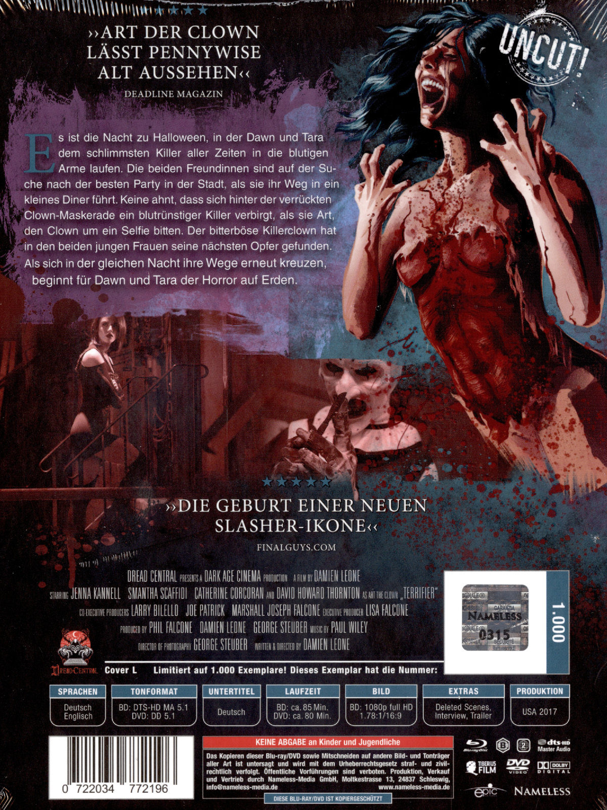 Inhalt: Es ist die Nacht zu Halloween, in der Dawn und Tara dem schlimmsten Killer aller Zeiten in die blutigen Arme laufen. Die beiden Freundinnen sind auf der Suche nach der besten Party in der Stadt, als sie ihr Weg in ein kleines Diner führt. Keine ahnt, dass sich hinter der verrückten Clown- Maskerade ein blutrünstiger Killer verbirgt, als sie Art, den Clown u mein Selfie bitten. Der bitterböse Killerclown hat in den beiden jungen Frauen seine nächsten Opfer gefunden. Als sich in der