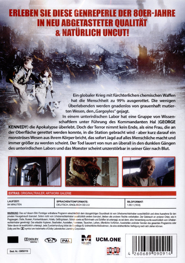 Ein globaler Krieg mit fürchterlichen chemischen Waffen hat die Menschheit zu 99% ausgerottet. Die wenigen Überlebenden werden gnadenlos von grauenhaft mutierten Wesen, den "Gargoyles" gejagt. In einem unterirdischen Labor hat eine Gruppe von Wissenschaftlern unter Führung des Kommandanten Hal (George Kennedy) die Apokalypse überlebt. Doch der Terror nimmt kein Ende, als eine Frau, die an der Oberfläche gerettet werden konnte, in die Station gebracht wird - aber kurz darauf ein monströses Wesen aus ihrem Körper bricht, das sofort Jagd auf alles Menschliche macht und immer größer zu werden scheint. Der Tod lauert von nun an überall in den dunklen Gängen des unterirdischen Labors und das Monster scheint unzerstörbar in seiner Gier nach Blut...