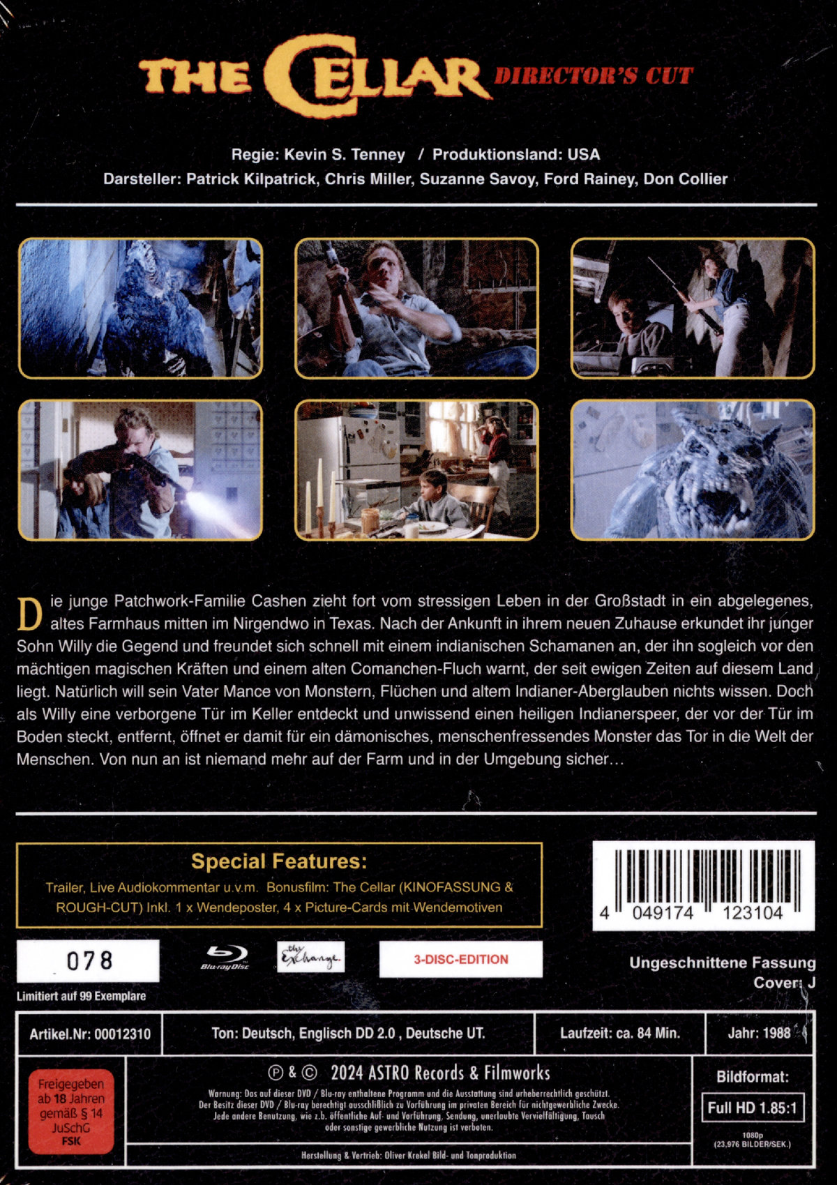 Der 80er Jahre Monster-Kultfilm in HD-Abtastung mit 2 uncut Blu-rays Blu-ray 1: Der Director’s Cut Blu-ray 2: Der bekannte Producer’s Cut Ein MUSS für Fans! Die Dreharbeiten begannen mit Regisseur John Woodward und wurden dann von Kevin Tenney fortgesetzt (Director’s Cut). Die Fassung von Tenney wurde dann von den Produzenten des Films noch einmal überarbeitet (der bekannte Producer’s Cut). Die Director’s Cut-Fassung von Tenney wurde bis heute nur einmal aufgeführt. Da der Producer’s Cut durch die Produzenten radikal umgeschnitten wurde, unterscheiden sich die beiden Fassungen in vielen Einstellungen. Der Director’s Cut verzichtet z.B. auf den mystisch indianischen Aspekt der Handlung und ist besticht durch besserer Dramaturgie und einer logischeren Szenenabfolge. Er beginnt mit den Ereignissen in den 30er Jahren, die beim Producers’s Cut als Rückblende eingebaut wurden und man erfährt mehr über die Hintergründe. „Vor allem die Spezialeffekte und die schauspielerischen Leistungen übertreffen die Erwartungen bei weitem.“ (10kbullets.blogspot.com) „80er Jahre Monsterhorror Unterhaltung mit all den Klischees, die man vom Genre erwartet!“ (reviews.ch.vu) „Anthony II ist ein lustiges Creature-Feature mit einer interessanten Geschichte und einem cool aussehenden Monster.” (pophorror.com) „Ein sehenswertes auf 80er-Jahre-Horror-Creature Feature.“ (lifebetweenframes.blogspot.com) „Anthony II ist ein brauchbarer und gegen Ende sogar ein packender Monster-im-Keller-Film ist.“ (classic-horror.com)