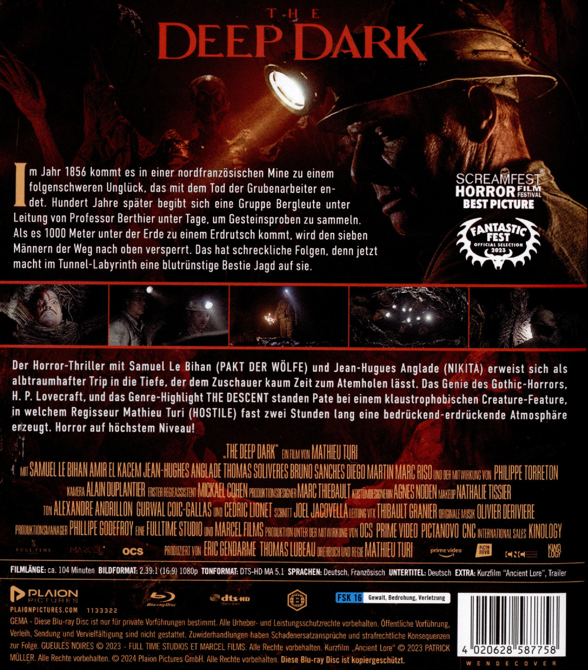 Der Horror-Thriller mit Samuel Le Bihan (PAKT DER WÖLFE) und Jean-Hugues Anglade (NIKITA) erweist sich als albtraumhafter Trip in die Tiefe, der dem Zuschauer kaum Zeit zum Atemholen lässt. Das Genie des Gothic-Horrors, H. P. Lovecraft, und das Genre-Highlight THE DESCENT standen Pate bei einem klaustrophobischen Creature-Feature, in welchem Regisseur Mathieu Turi (HOSTILE) fast zwei Stunden lang eine bedrückend-erdrückende Atmosphäre erzeugt. Horror auf höchstem Niveau!