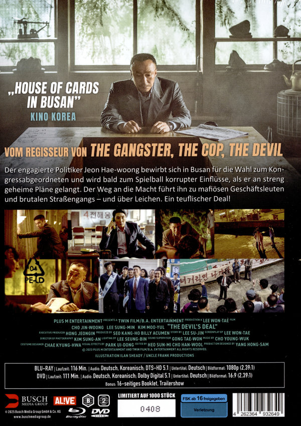 Hochspannender Polit-Thriller a là "House of Cards", vom Regisseur von "The Gangster, The Cop, The Devil": Der engagierte Politiker Jeon Hae-woong bewirbt sich in Busan für die Wahl zum Kongressabgeordneten und wird bald zum Spielball korrupter Einflüsse, als er an streng geheime Pläne gelangt. Der Weg an die Macht führt ihn zu mafiösen Geschäftsleuten und brutalen Straßengangs – und über Leichen. Ein teuflischer Deal!