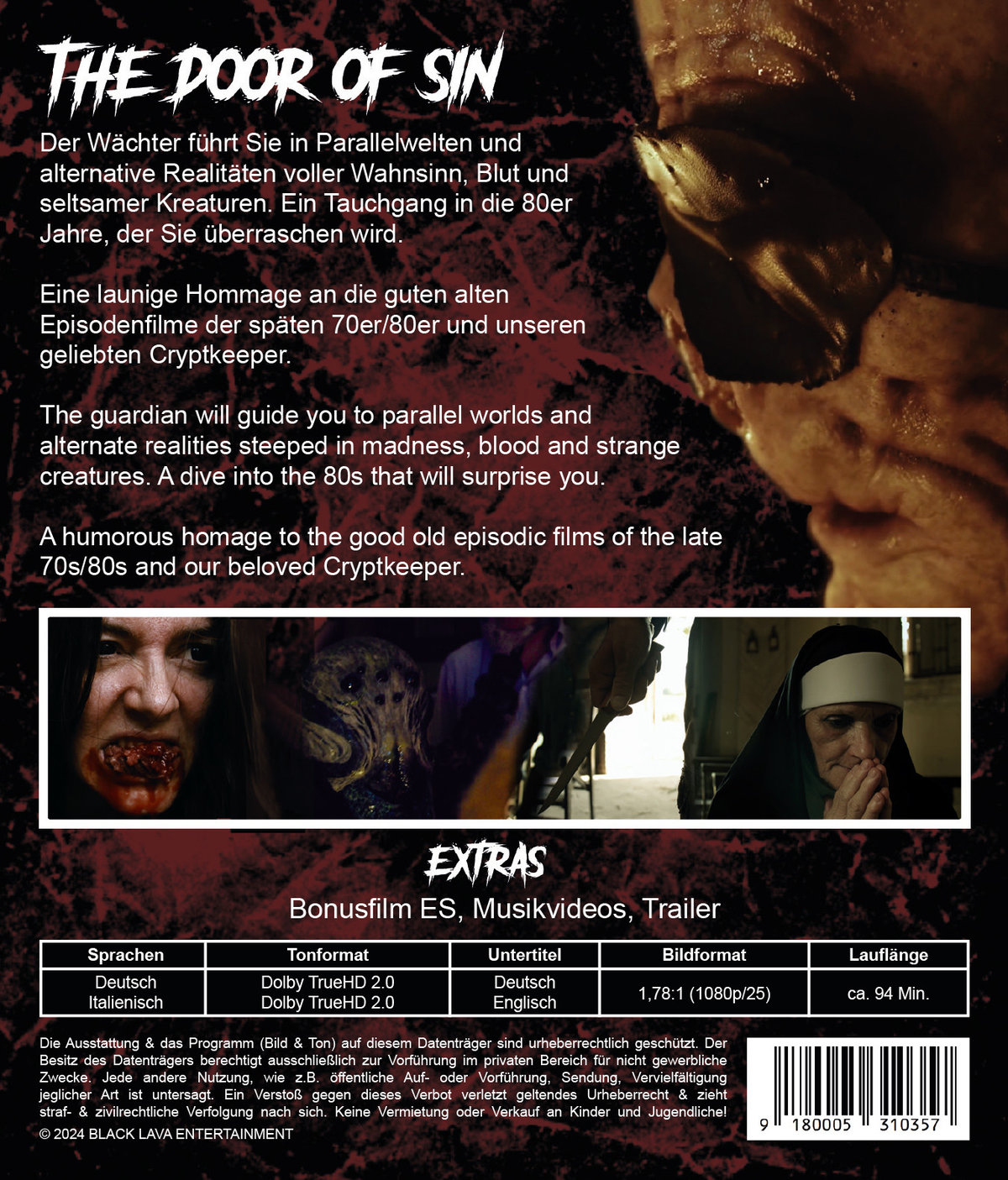Der Wächter führt Sie in Parallelwelten und alternative Realitäten voller Wahnsinn, Blut und seltsamer Kreaturen. Ein Tauchgang in die 80er Jahre, der Sie überraschen wird. Eine launige Hommage an die guten alten Episodenfilme der späten 70er/80er und unseren geliebten Cryptkeeper.