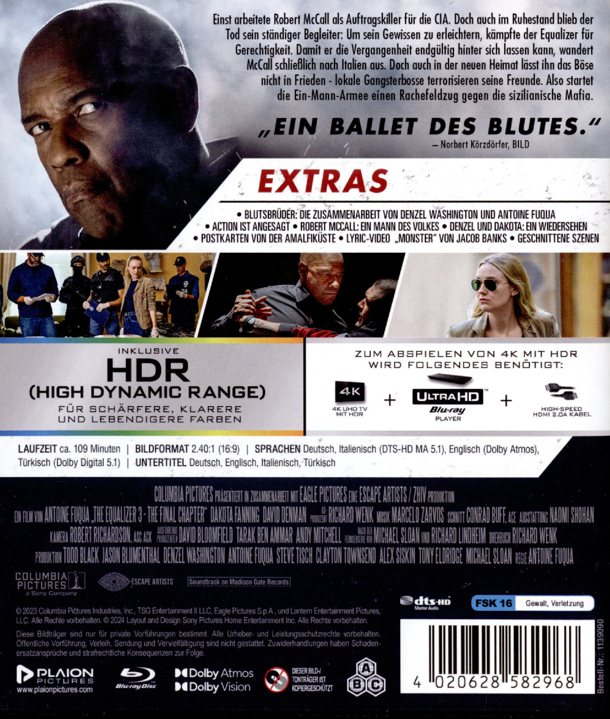 Einst arbeitete Robert McCall als Auftragskiller für die CIA. Doch auch im Ruhestand blieb der Tod sein ständiger Begleiter: Um sein Gewissen zu erleichtern, kämpfte der Equalizer für Gerechtigkeit. Damit er die Vergangenheit endgültig hinter sich lassen kann, wandert McCall schließlich nach Italien aus. Doch auch in der neuen Heimat lässt ihn das Böse nicht in Frieden - lokale Gangsterbosse terrorisieren seine Freunde. Also startet die Ein-Mann-Armee einen Rachefeldzug gegen die sizilianische Mafia. (1 4K-UHD + 1 Blu-ray)