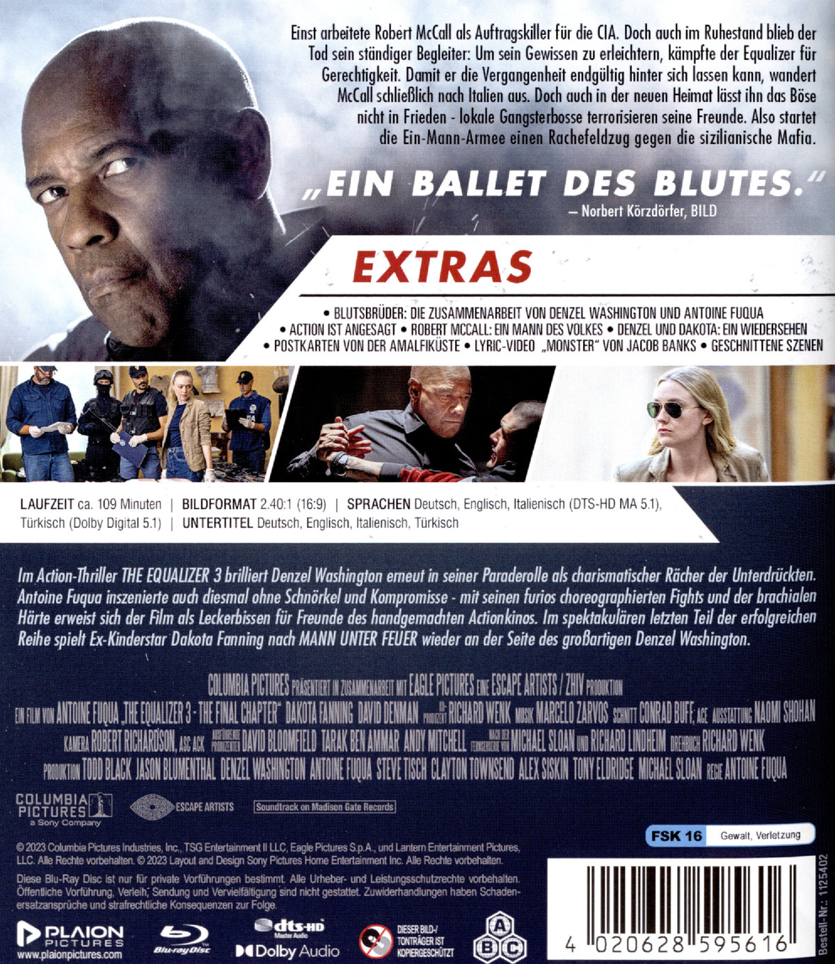 Im Action-Thriller THE EQUALIZER 3 brilliert Denzel Washington erneut in seiner Paraderolle als charismatischer Rächer der Unterdrückten. Antoine Fuqua inszenierte auch diesmal ohne Schnörkel und Kompromisse - mit seinen furios choreographierten Fights und der brachialen Härte erweist sich der Film als Leckerbissen für Freunde des handgemachten Actionkinos. Im spektakulären letzten Teil der erfolgreichen Reihe spielt Ex-Kinderstar Dakota Fanning nach MANN UNTER FEUER (2004) wieder an der Seite des großartigen Denzel Washington.