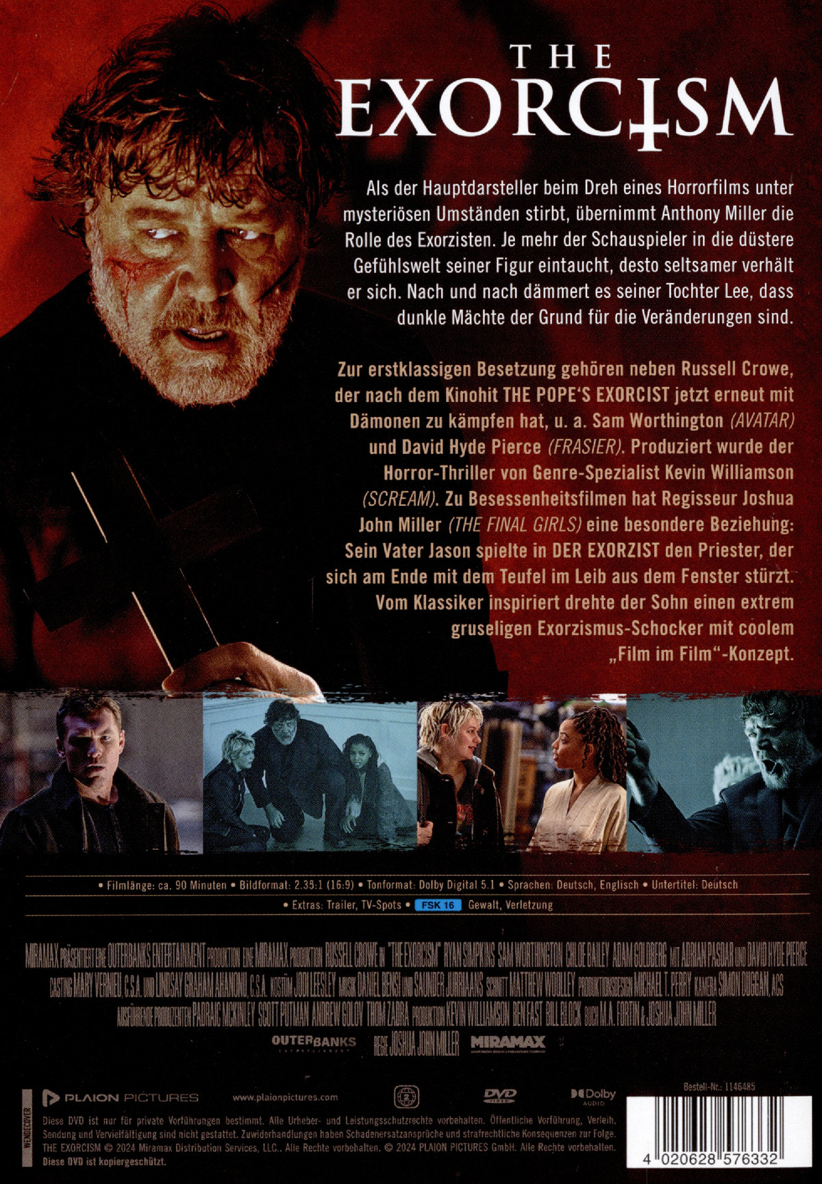 Zur erstklassigen Besetzung gehören neben Russell Crowe, der nach dem Kinohit THE POPE'S EXORCIST jetzt erneut mit Dämonen zu kämpfen hat, u. a. Sam Worthington (AVATAR) und David Hyde Pierce (FRASIER). Produziert wurde der Horror-Thriller von Genre-Spezialist Kevin Williamson (SCREAM). Zu Besessenheitsfilmen hat Regisseur Joshua John Miller (THE FINAL GIRLS) eine besondere Beziehung: Sein Vater Jason spielte in DER EXORZIST den Priester, der sich am Ende mit dem Teufel im Leib aus dem Fenster stürzt. Vom Klassiker inspiriert drehte der Sohn einen extrem gruseligen Exorzismus-Schocker mit coolem „Film im Film“-Konzept.