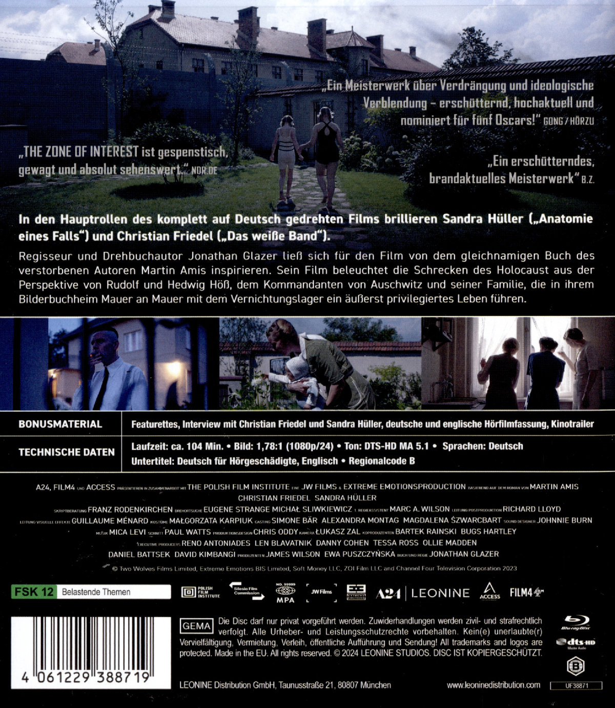 Regisseur und Drehbuchautor Glazer ließ sich für den Film von dem gleichnamigen Buch des verstorbenen Autoren Martin Amis inspirieren. Sein Film beleuchtet die Schrecken des Holocaust aus der Perspektive von Rudolf und Hedwig Höss, dem Kommandanten von Auschwitz und seiner Familie, die in ihrem Bilderbuchheim Mauer an Mauer mit dem Vernichtungslager ein äußerst privilegiertes Leben führen. Pressezitate: "Ein Meisterwerk über Verdrängung und ideologische Verblendung - erschütternd und hochaktuell." (TV DIREKT/ V DIGITAL) "Ein erschütterndes, brandaktuelles Meisterwerk" (B.Z.) "Sandra Hüller gibt im Film des Briten Jonathan Glazer dem Unfassbaren eine Gestalt." (BRIGITTE) "Ein Meisterwerk über Verdrängung und ideologische Verblendung - erschütternd, hochaktuell und nominiert für fünf Oscars!" (GONG/HÖRZU)