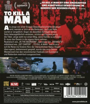 Als Jorge von einer Gruppe Gewaltverbrecher schikaniert wird, wendet er sich an die Behörden, doch auf Hilfe wartet er vergeblich. Sogar als dieselben Schläger seinen Sohn lebensgefährlich verletzen, schützt das System einzig die Täter. Jorge sieht nur einen Weg, seine Familie zu schützen: er muss das Gesetz in die eigene Hand nehmen. Realistisch wie In the Bedroom, spannend wie Memento, stilbildend wie Get Carter. To kill a Man macht sich auf die Reise ins finstere Herz der menschlichen Natur. Visuell überragend, beklemmend gespielt, wurde das neue Genre-Meisterwerk bei den renommierten Festivals von Sundance und Rotterdam mehrfach ausgezeichnet. .