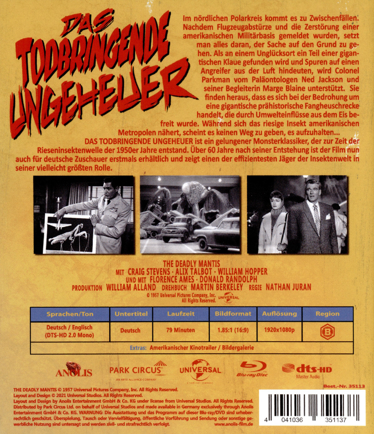 DAS TODBRINGENDE UNGEHEUER ist ein gelungener Monsterklassiker, der zur Zeit der Rieseninsektenwelle der 1950er Jahre entstand. Über 60 Jahre nach seiner Entstehung ist der Film nun auch für deutsche Zuschauer erhältlich und zeigt einen der effizientesten Jäger der Insektenwelt in seiner vielleicht größten Rolle.