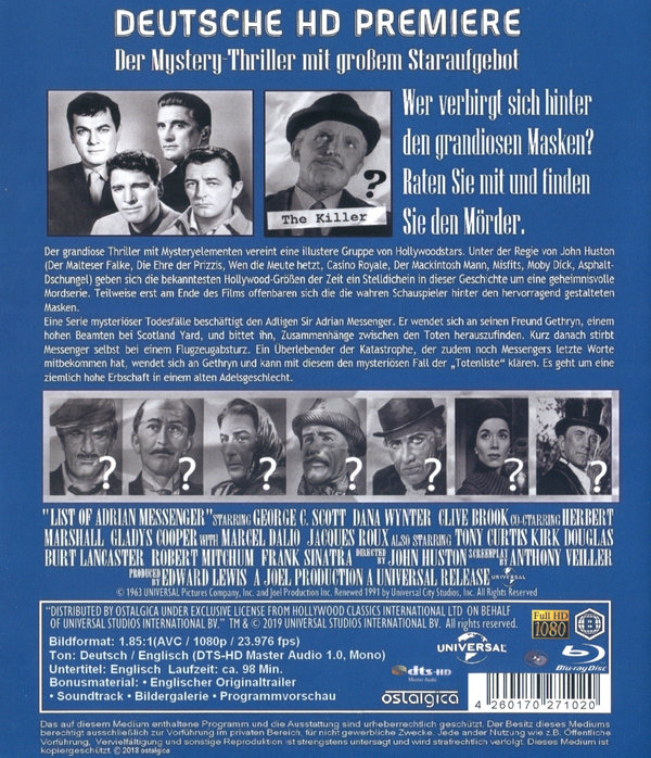 Der grandiose Thriller mit Mysteryelementen vereint eine illustere Gruppe von Hollywoodstars. Unter der Regie von John Huston geben sich die bekanntesten Hollywood-Größen der Zeit ein Stelldichein in dieser Geschichte um eine geheimnisvolle Mordserie.