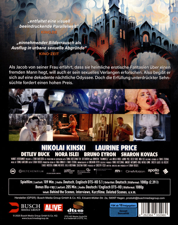 Fesselnder Erotik-Thriller nach der sinnlichen Novelle, auf der auch Kubricks Meisterwerk EYES WIDE SHUT basiert. Als Jacob von seiner Frau erfährt, dass sie heimliche erotische Fantasien über einen fremden Mann hegt, will auch er sein sexuelles Verlangen erforschen. Also begibt er sich auf eine dekadente nächtliche Odyssee. Doch die Erfüllung unterdrückter Sehnsüchte fordert einen hohen Preis.