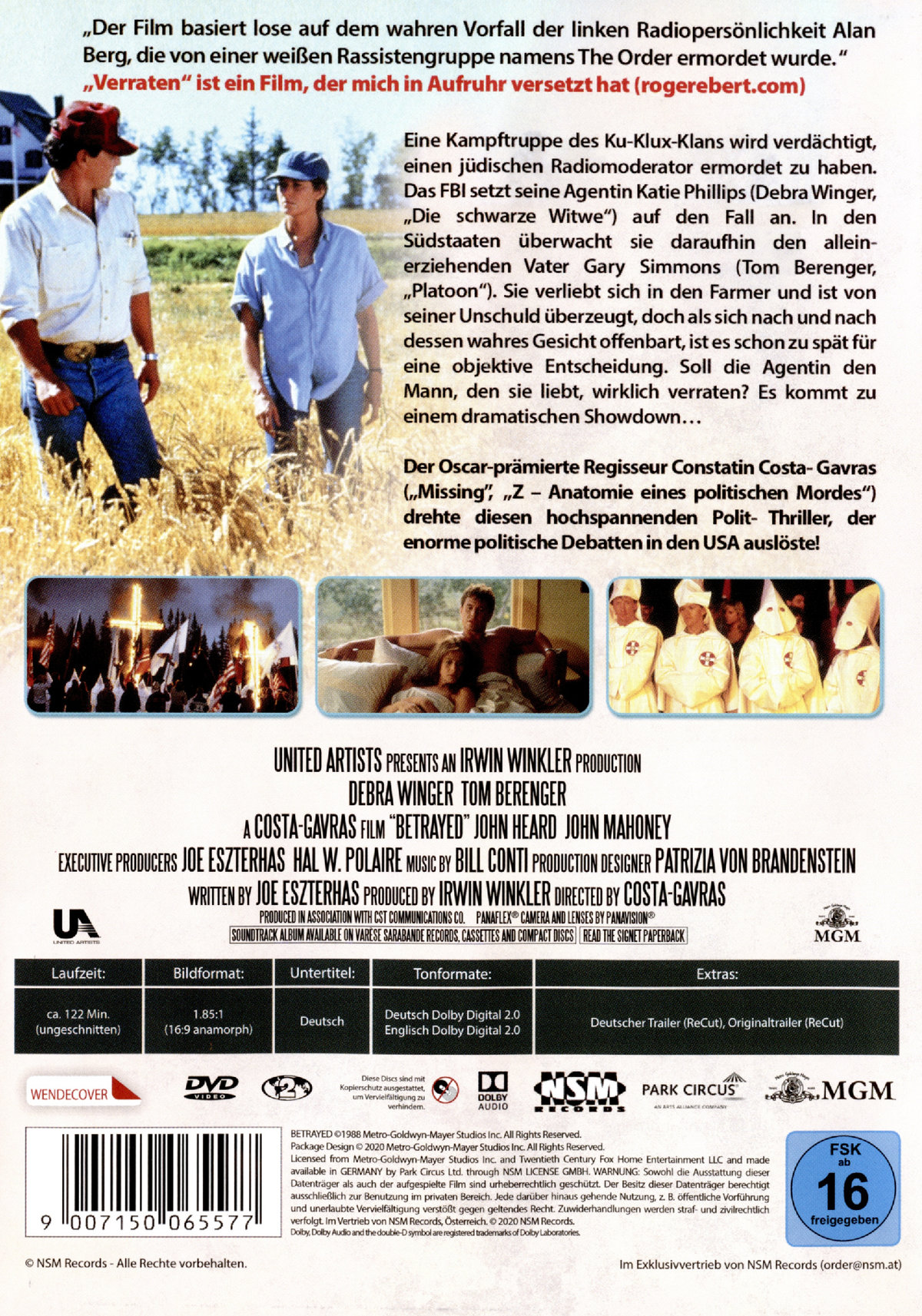 Eine Kampftruppe des Ku-Klux-Kans wird verdächtigt, einen jüdischen Radiomoderator ermordet zu haben. Das FBI setzt seine Agentin Katie Phillips (Debra Winger, „Die schwarze Witwe“) auf den Fall an. In den Südstaaten überwacht sie daraufhin den alleinerziehenden Vater Gary Simmons (Tom Berenger, „Platoon“). Sie verliebt sich in den Farmer und ist von seiner Unschuld überzeugt, doch als sich nach und nach dessen wahres Gesicht offenbart, ist es schon zu spät für eine objektive Entscheidung. Soll die Agentin den Mann, den sie liebt, wirklich verraten? Es kommt zu einem dramatischen Showdown … Der Oscar-prämierte Regisseur Constantin Costa-Gavras („Missing”, “Z – Anatomie eines politischen Mordes“) drehte diesen hochspannenden Polit-Thriller, der enorme politische Debatten in den USA auslöste!