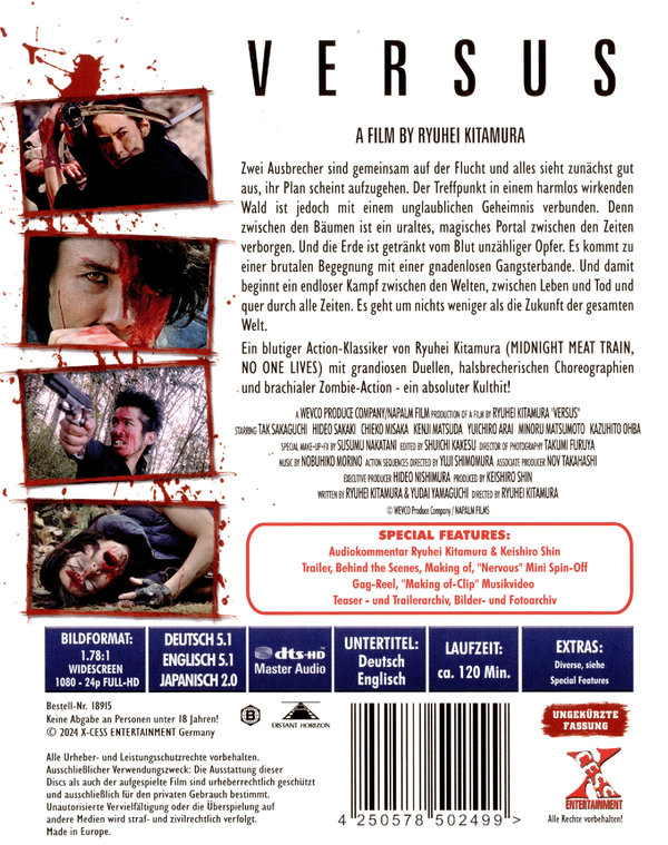 Mit Versus legte Ryuhei Kitamura den Grundstein für seinen internationalen Durchbruch. Der stilprägende Mix aus kompromissloser Martial-Arts-Action, stylischer Kameraarbeit und blutgetränktem Zombie-Horror machte ihn schlagartig zum Kultregisseur. Was hier im düsteren "Forest of Resurrection" begann, ebnete den Weg für Filme wie Azumi, Godzilla: Final Wars und The Midnight Meat Train.