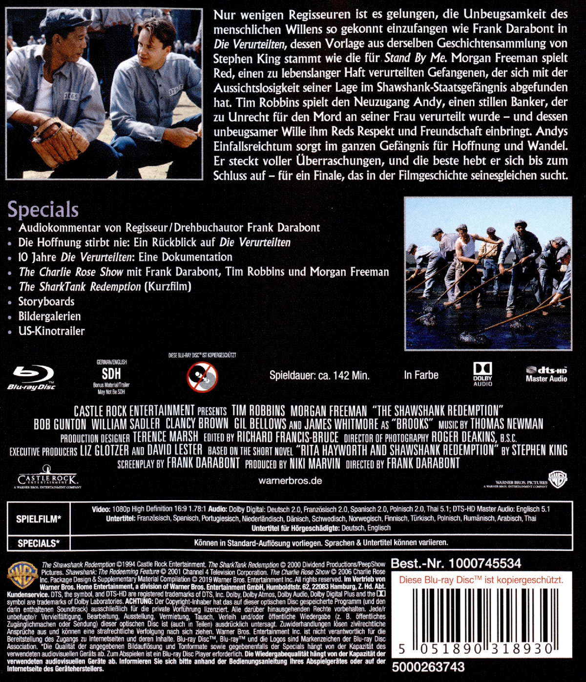 Daniele Delorme, Maurice Benichou, Mark Rolston, Gil Bellows, Tim Robbins, Morgan Freeman, William Sadler, Clancy Brown, Bob Gunton