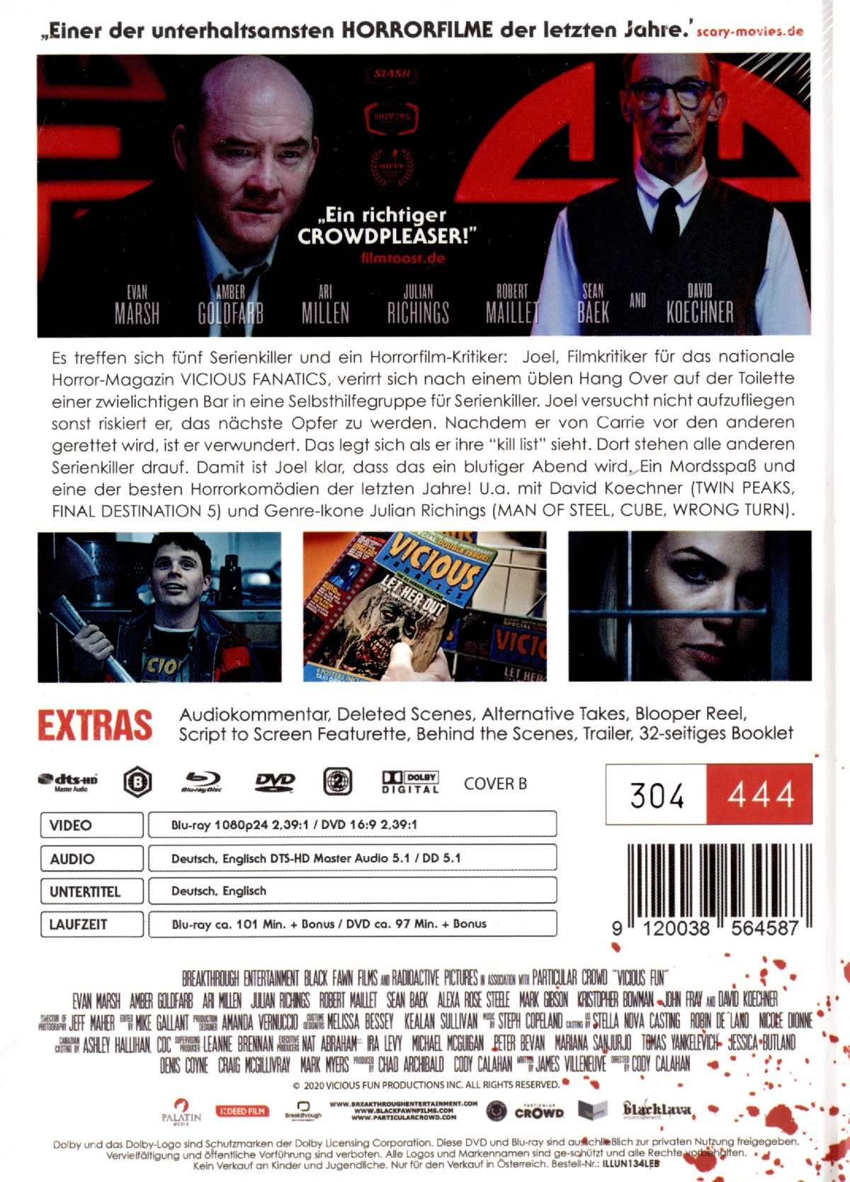 Es treffen sich fünf Serienkiller und ein Horrorfilm-Kritiker: Joel, Filmkritiker für das nationale Horror-Magazin VICIOUS FANATICS, verirrt sich nach einem üblen Hang Over auf der Toilette einer zwielichtigen Bar in eine Selbsthilfegruppe für Serienkiller. Joel versucht nicht aufzufliegen sonst riskiert er, das nächste Opfer zu werden. Nachdem er von Carrie vor den anderen gerettet wird, ist er verwundert. Das legt sich als er ihre “kill list” sieht. Dort stehen alle anderen Serienkiller drauf. Damit ist Joel klar, dass das ein blutiger Abend wird. Ein Mordsspaß und eine der besten Horrorkomödien der letzten Jahre! U.a. mit David Koechner (TWIN PEAKS, FINAL DESTNATION 5) und Genre-Ikone Julian Richings (MAN OF STEEL, CUBE, WRONG TURN)