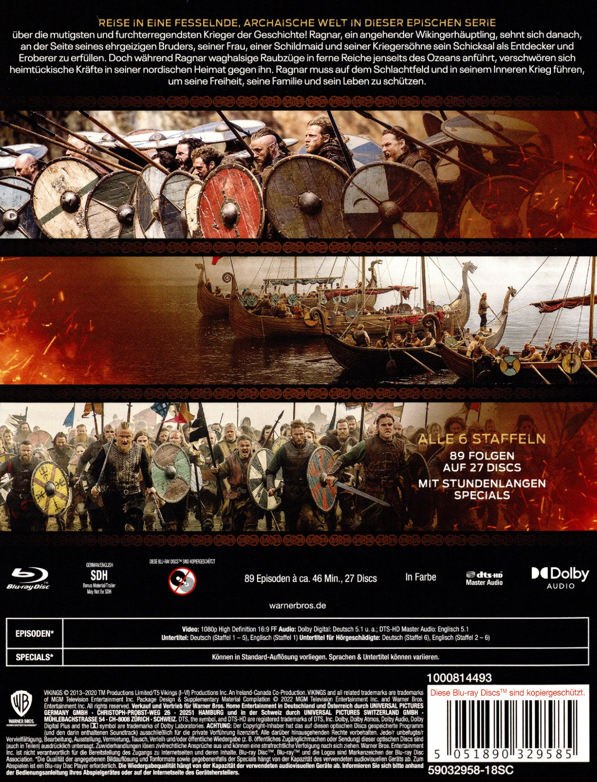"Vikings" folgt Ragnar Lothbrok, dem größten Helden seiner Zeit, auf seinen Abenteuern. Die Serie erzählt die Saga von Ragnars Wikingerstamm, seiner Familie und wie er König der nordischen Stämme wird. Als furchtloser Kämpfer verkörpert Ragnar auch die nordischen Traditionen von der Hingabe an die Götter. Der Legende nach war er ein direkter Nachfahre Odins, Gott des Krieges und aller Krieger. Doch nicht jeder ist ihm und seinen ehrgeizigen Plänen wohlgesonnen.Alle 6 Staffeln/89 Folgen des Wikinger-Epos in Serie auf 27 DVDs bzw. Blu-rays.