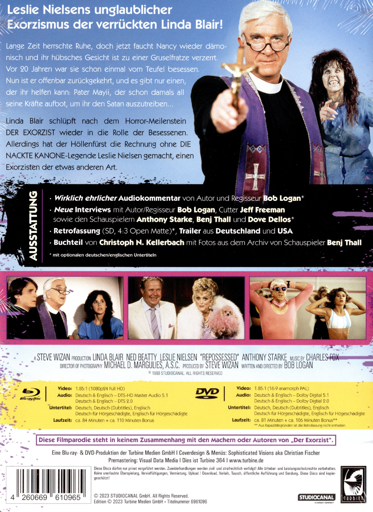 Leslie Nielsens unglaublicher Exorzismus der verrückten Linda Blair! Lange Zeit herrschte Ruhe, doch jetzt faucht Nancy wieder dämonisch und ihr hübsches Gesicht ist zu einer Gruselfratze verzerrt. Vor 20 Jahren war sie schon einmal vom Teufel besessen. Nun ist er offenbar zurückgekehrt, und es gibt nur einen, der ihr helfen kann: Pater Mayii, der schon damals all seine Kräfte aufbot, um ihr den Satan auszutreiben... Linda Blair schlüpft nach dem Horror-Meilenstein DER EXORZIST wieder in die Rolle der Besessenen. Allerdings hat der Höllenfürst die Rechnung ohne DIE NACKTE KANONE-Legende Leslie Nielsen gemacht, einen Exorzisten der etwas anderen Art.