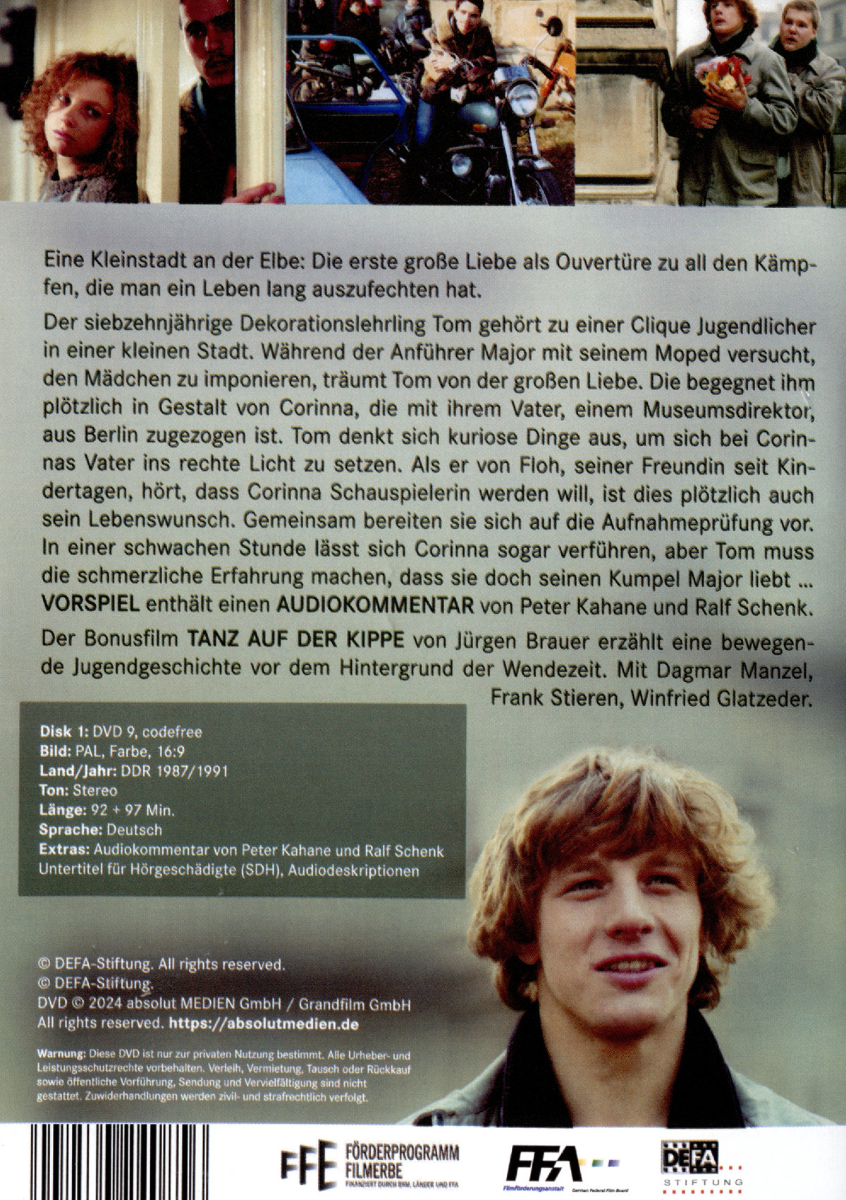 Eine Kleinstadt an der Elbe: Die erste große Liebe als Ouvertüre zu all den Kämpfen, die man ein Leben lang auszufechten hat. Der siebzehnjährige Dekorationslehrling Tom gehört zu einer Clique Jugendlicher in einer kleinen Stadt. Während der Anführer Major mit seinem Moped versucht, den Mädchen zu imponieren, träumt Tom von der großen Liebe. Die begegnet ihm plötzlich in Gestalt von Corinna, die mit ihrem Vater, einem Museumsdirektor, aus Berlin zugezogen ist. Tom denkt sich kuriose Dinge aus, um sich bei Corinnas Vater ins rechte Licht zu setzen. Als er von Floh, seiner Freundin seit Kindertagen, hört, dass Corinna Schauspielerin werden will, ist dies plötzlich auch sein Lebenswunsch. Gemeinsam bereiten sie sich auf die Aufnahmeprüfung vor. In einer schwachen Stunde lässt sich Corinna sogar verführen, aber Tom muss die schmerzliche Erfahrung machen, dass sie doch seinen Kumpel Major liebt ... Der Bonusfilm "Tanz auf der Kippe" von Jürgen Brauer erzählt eine bewegende Jugendgeschichte vor dem Hintergrund der Wendezeit. Mit Dagmar Manzel, Frank Stieren, Winfried Glatzeder.