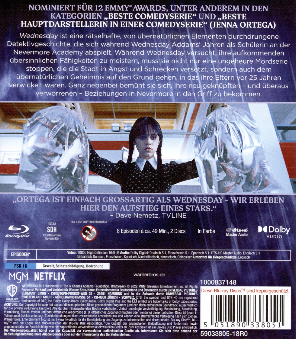 "Wednesday" ist eine rätselhafte, von übernatürlichen Elementen durchdrungene Detektivgeschichte, die sich während Wednesday Addams' Jahren als Schülerin an der Nevermore Academy abspielt. Während Wednesday versucht, ihre aufkommenden übersinnlichen Fähigkeiten zu meistern, muss sie nicht nur eine ungeheure Mordserie stoppen, die die Stadt in Angst und Schrecken versetzt, sondern auch dem übernatürlichen Geheimnis auf den Grund gehen, in das ihre Eltern vor 25 Jahren verwickelt waren. Ganz nebenbei bemüht sie sich, ihre neu geknüpften - und überaus verworrenen - Beziehungen in Nevermore in den Griff zu bekommen.Alle 8 Episoden der ersten Staffel auf 3 bzw. 2 DiscsEpisodenübersicht- Mittwochskind trägt großes Leid- Trautes Heim, Leid allein- Freund und Leid liegen nah beieinander- Bei Leid und Trank- Wer Leid sät ...- Leid pro quo- Kommt Leid, kommt Rat- Ein Leid kommt selten allein