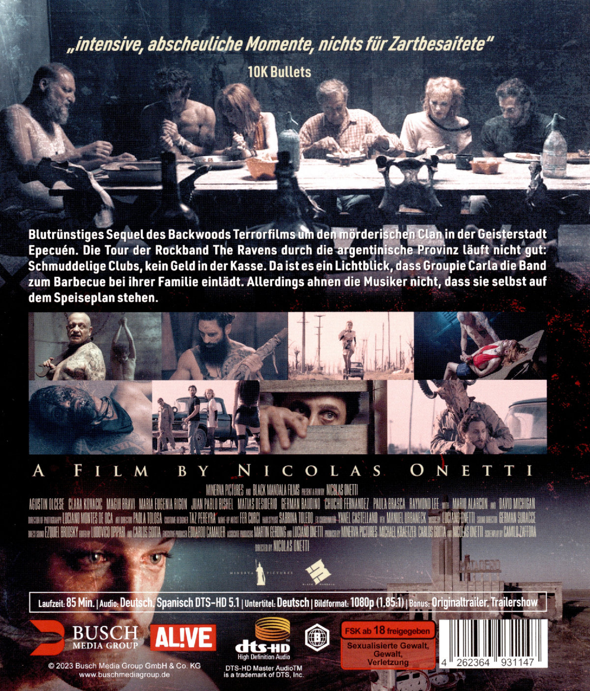 | Inhalt | Blutrünstiges Sequel des Backwoods-Terrorfilms um den mörderischen Clan in der Geisterstadt Epecuén. Die Tour der Rockband The Ravens durch die argentinische Provinz läuft nicht gut: Schmuddelige Clubs, kein Geld in der Kasse. Da ist es ein Lichtblick, dass Groupie Carla die Band zum Barbecue bei ihrer Familie einlädt. Allerdings ahnen die Musiker nicht, dass sie selbst auf dem Speiseplan stehen. |