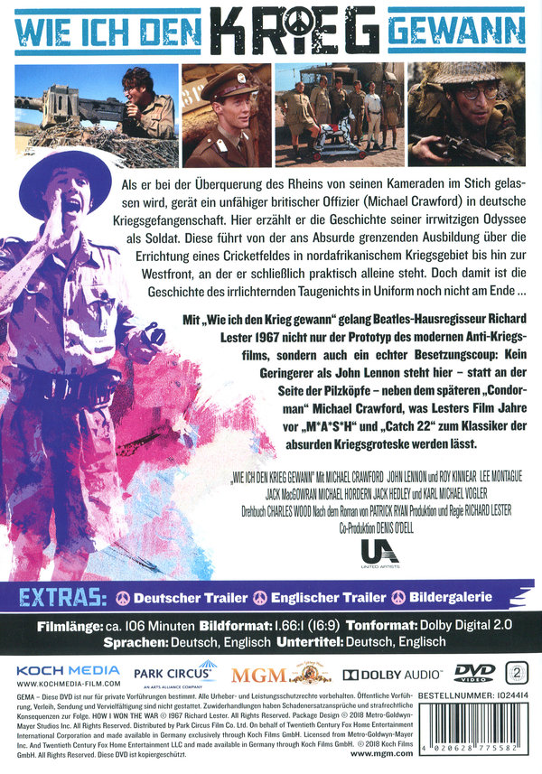 Mit "Wie ich den Krieg gewann" gelang Beatles-Hausregisseur Richard Lester 1965 nicht nur der Prototyp des modernen Anti-Kriegsfilms, sondern auch ein echter Besetzungscoup: Kein Geringerer als John Lennon steht hier - statt an der Seite der Pilzköpfe - neben dem späteren "Condorman" Michael Crawford, was Lesters Film Jahre vor "M*A*S*H" und "Catch 22" zum Klassiker der absurden Kriegsgroteske werden lässt.