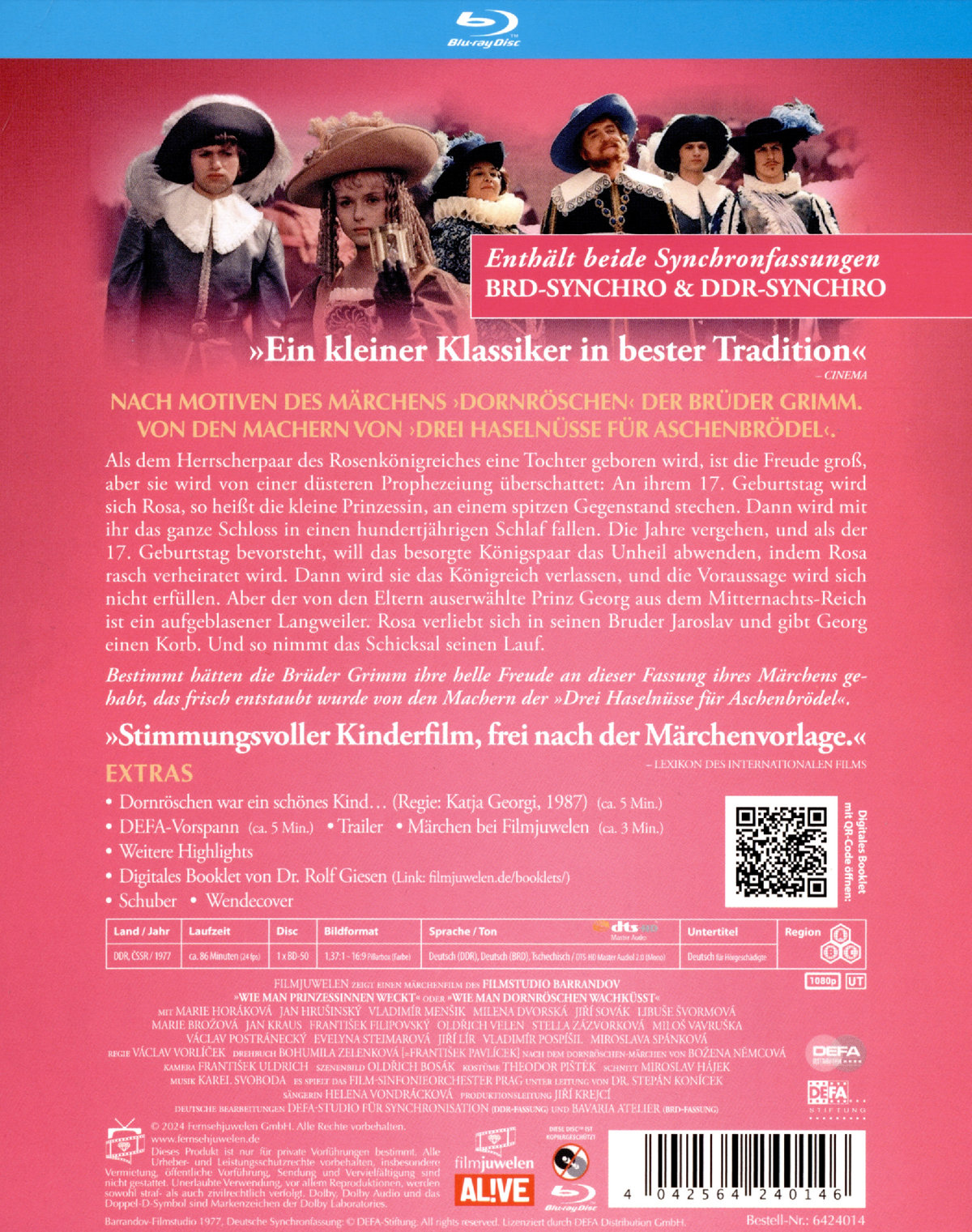 Digitales Booklet von Dr. Rolf Giesen (online abrufbar); "Dornröschen war ein schönes Kind ..." (Regie: Katja Georgi; 1987); DEFA-Vorspann; Trailer; Trailer "Märchen bei Filmjuwelen"; weitere Highlights; Schuber; Wendecover