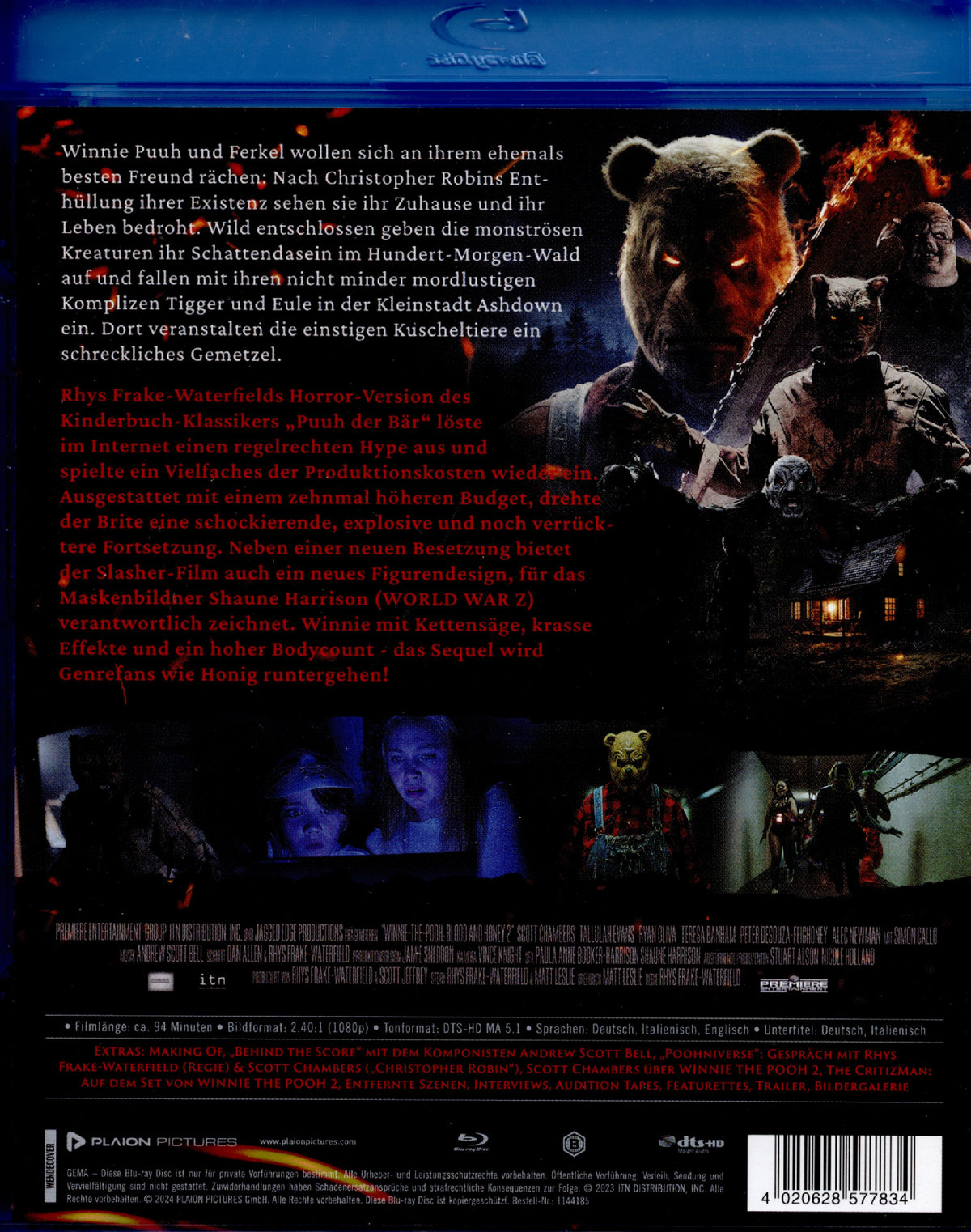 Rhys Frake-Waterfields Horror-Version des Kinderbuch-Klassikers ,,Pu der Bär“ löste im Internet einen regelrechten Hype aus und spielte ein Vielfaches der Produktionskosten wieder ein. Ausgestattet mit einem zehnmal höheren Budget, drehte der Brite eine schockierende, explosive und noch verrücktere Fortsetzung. Neben einer neuen Besetzung bietet der Slasher-Film auch ein neues Figurendesign, für das Maskenbildner Shaune Harrison (WORLD WAR Z) verantwortlich zeichnet. Winnie mit Kettensäge, krasse Effekte und ein hoher Bodycount - das Sequel wird Genrefans wie Honig runtergehen!