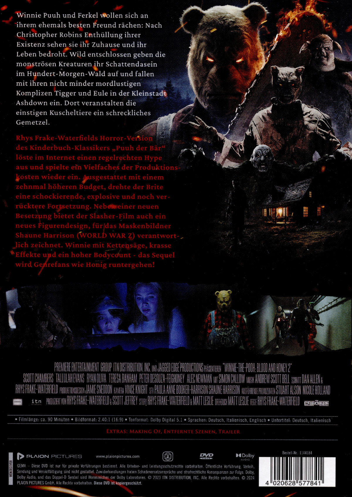 Rhys Frake-Waterfields Horror-Version des Kinderbuch-Klassikers ,,Pu der Bär“ löste im Internet einen regelrechten Hype aus und spielte ein Vielfaches der Produktionskosten wieder ein. Ausgestattet mit einem zehnmal höheren Budget, drehte der Brite eine schockierende, explosive und noch verrücktere Fortsetzung. Neben einer neuen Besetzung bietet der Slasher-Film auch ein neues Figurendesign, für das Maskenbildner Shaune Harrison (WORLD WAR Z) verantwortlich zeichnet. Winnie mit Kettensäge, krasse Effekte und ein hoher Bodycount - das Sequel wird Genrefans wie Honig runtergehen!
